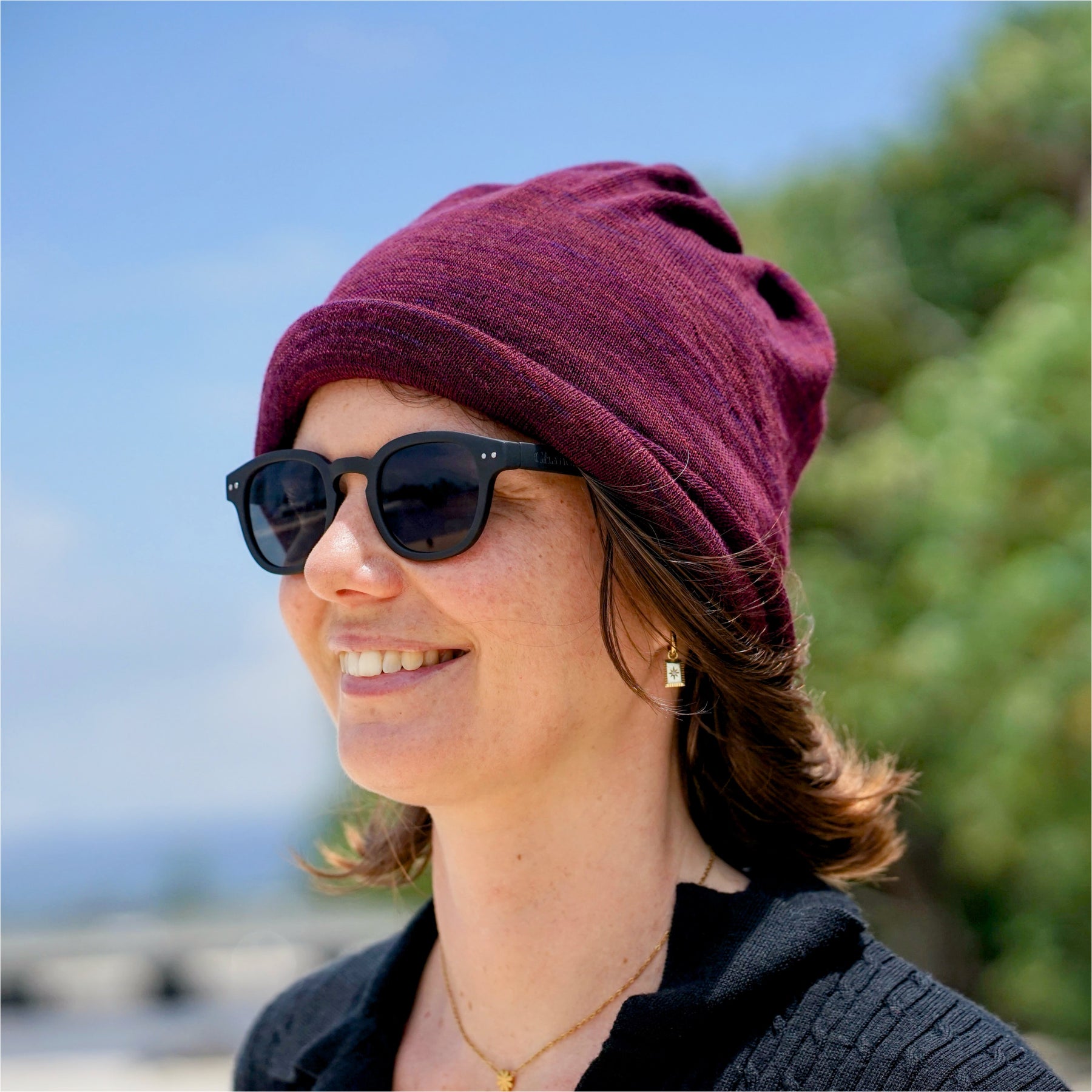• Open Beanie: Twist once for a relaxed fit that keeps your hair free and your look effortless.